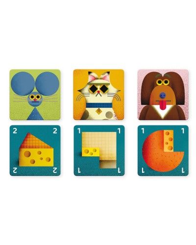 Adéntrate en un hilarante y estratégico tablero de juego donde el queso es el protagonista y una peculiar cadena alimenticia dicta el destino de cada bocado. En Djeco Cartas Cheese Rescue, el aire está cargado de tensión: pequeños ratones intentan devorar tus valiosos quesos, mientras astutos gatos persiguen a los ratones y los fieles perros, a su vez, ahuyentan a los gatos. Una auténtica batalla de ingenio que se desarrolla carta a carta, donde cada movimiento cuenta para proteger tu porción de delicia láctea.