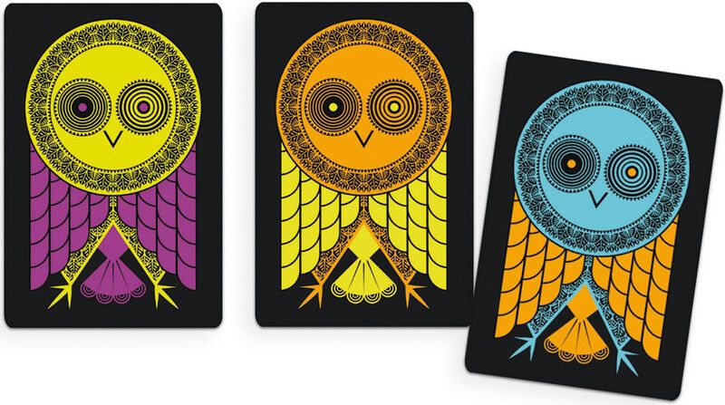 La mecánica de Hiboufou es tan sencilla como adictiva: los jugadores deben colocar sus cartas de búho sobre la mesa, asegurándose de que al menos un color del búho coincida con el de la carta adyacente. El objetivo principal es vaciar tu mano de tres cartas para llevarte el montón sobre el que has jugado la última, acumulando así la mayor cantidad de búhos posible. Es un juego que combina hábilmente la suerte en el reparto de cartas con la estrategia inteligente de cuándo y dónde colocar cada búho, manteniendo a todos los participantes en vilo hasta la última jugada.