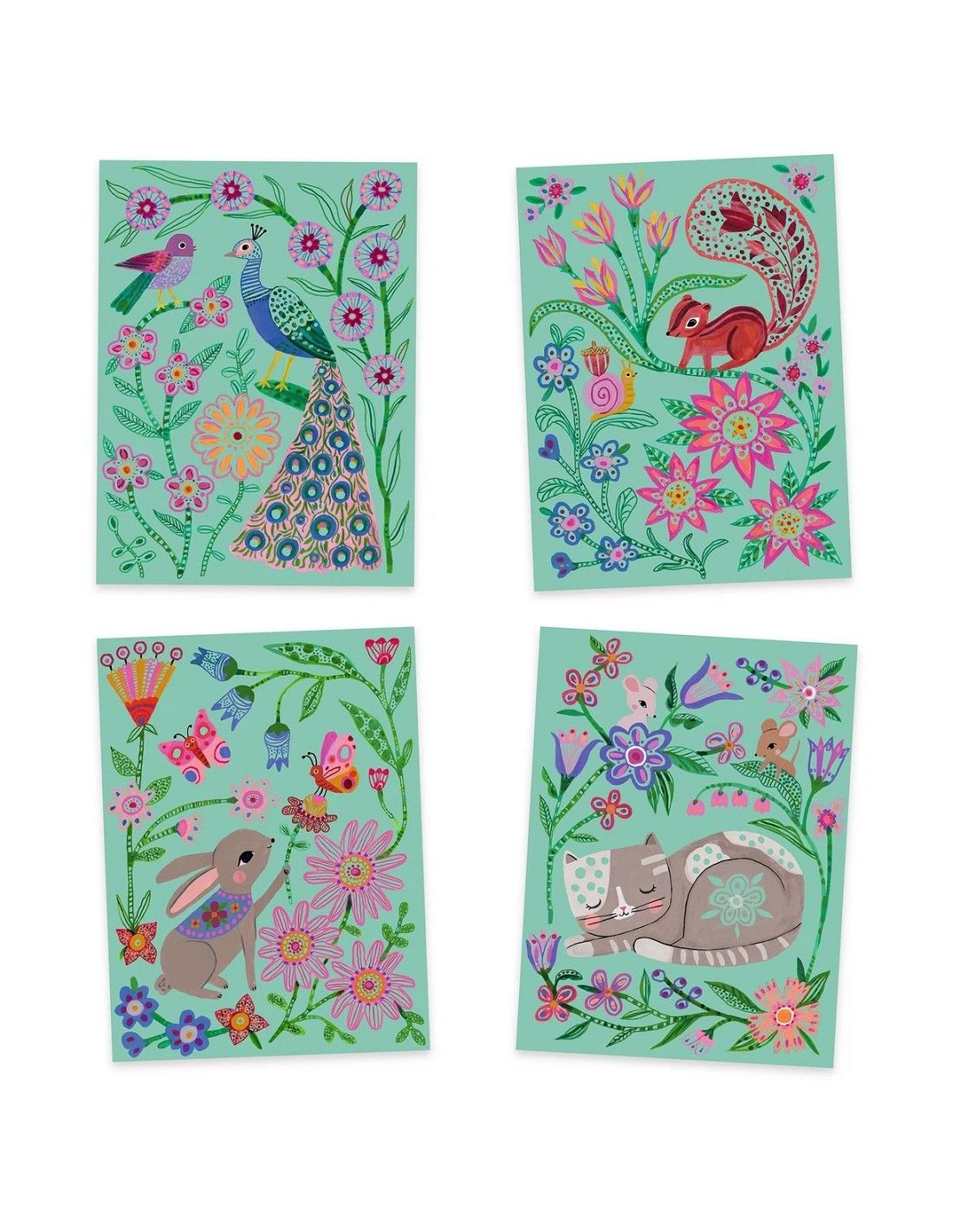 - 4 láminas ilustradas para rascar (20 x 15 cm).