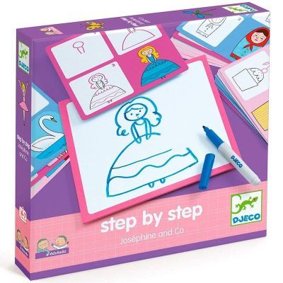 Bienvenidos al taller de arte de Josephine, un espacio donde la imaginación se encuentra con la técnica para dar vida a personajes maravillosos. Con Djeco Eduludo Step by Step Josephine and Co, el miedo al papel en blanco desaparece para dar paso a la seguridad de crear figuras con identidad propia. Este set transporta a los niños a un universo de elegancia y color, donde aprender a dibujar princesas, hadas o simpáticas niñas se convierte en una aventura de descubrimiento visual que estimula su sensibilidad estética.