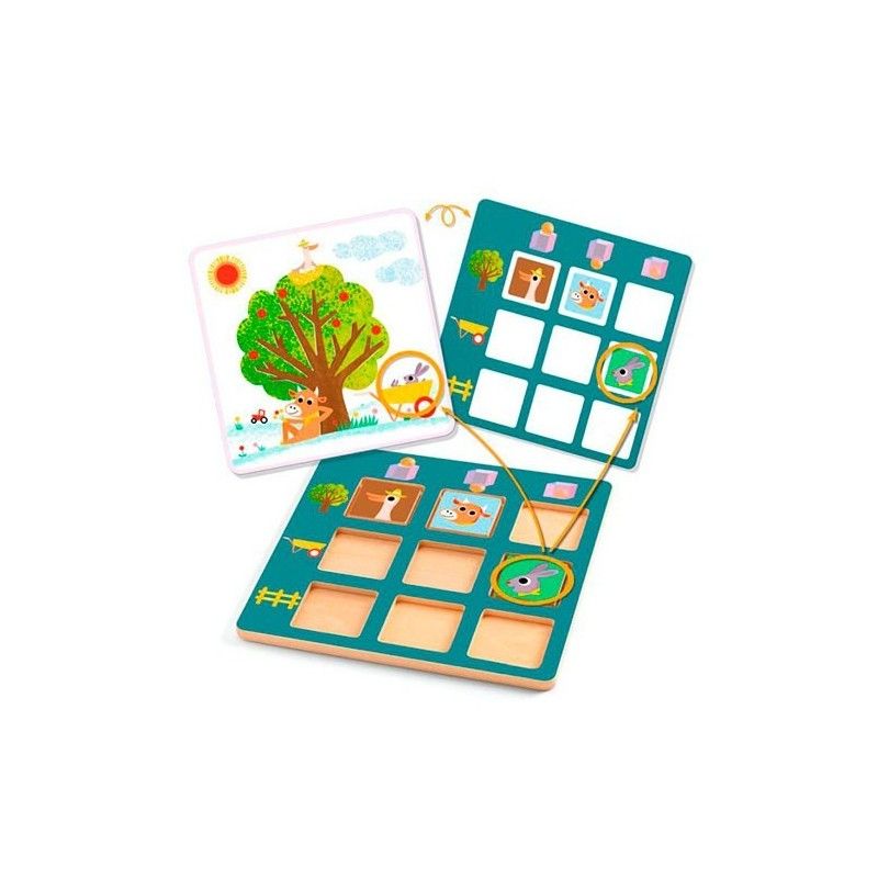 Djeco Eduludo Step by Step Primotopo es un juego educativo de observación y orientación espacial para peques que empiezan a entender conceptos como encima, debajo y dentro. A través de tarjetas ilustradas, el niño debe colocar los animalitos en el tablero exactamente donde indica el reto: sobre el árbol, dentro de la carretilla, debajo de la rama… Es un juego sencillo, manipulativo y muy agradecido, perfecto para casa o aula porque permite jugar con calma y comprobar el resultado al momento. Con Primotopo, el lenguaje espacial se vuelve algo que se toca y se ve, paso a paso.