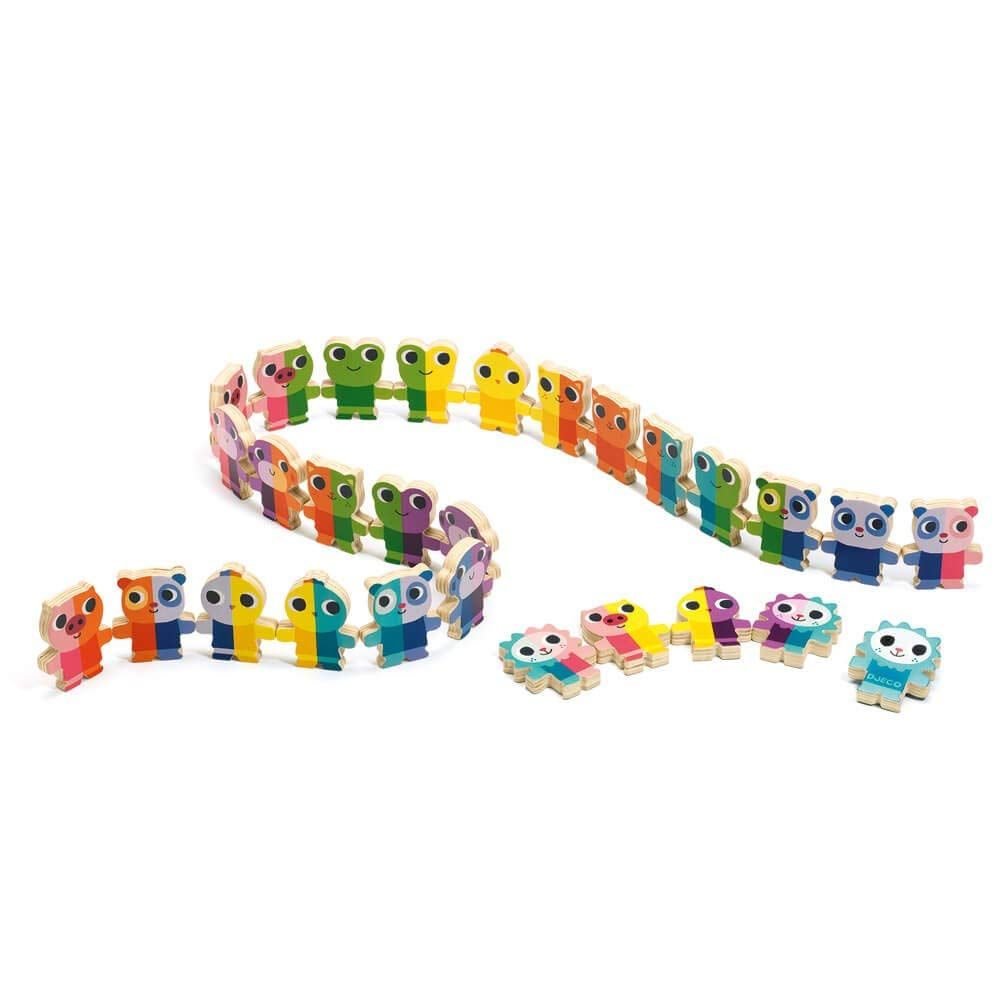 La mecánica de Domino Up es sencilla y adaptable: los jugadores deben emparejar los colores de los animales para construir una cadena continua de fichas. La magia reside en su versatilidad: para los principiantes, las piezas pueden colocarse planas sobre la mesa, facilitando la asociación visual. A medida que desarrollan mayor habilidad, pueden desafiarse a sí mismos colocando las fichas en posición vertical, potenciando la destreza y la coordinación. ¡Incluso pueden intentar el emocionante efecto dominó, observando cómo sus construcciones caen en cascada!