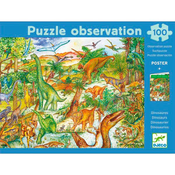 Prepárate para un emocionante viaje en el tiempo con el Puzle de Observación Dinosaurios de Djeco. Este rompecabezas te invita a sumergirte en un vibrante paisaje prehistórico, donde majestuosos dinosaurios cobran vida en cada una de las 100 piezas. Más allá de la diversión de ensamblar, este puzle se convierte en una ventana a un mundo extinto, estimulando la imaginación y el amor por el conocimiento en cada pequeño paleontólogo.
