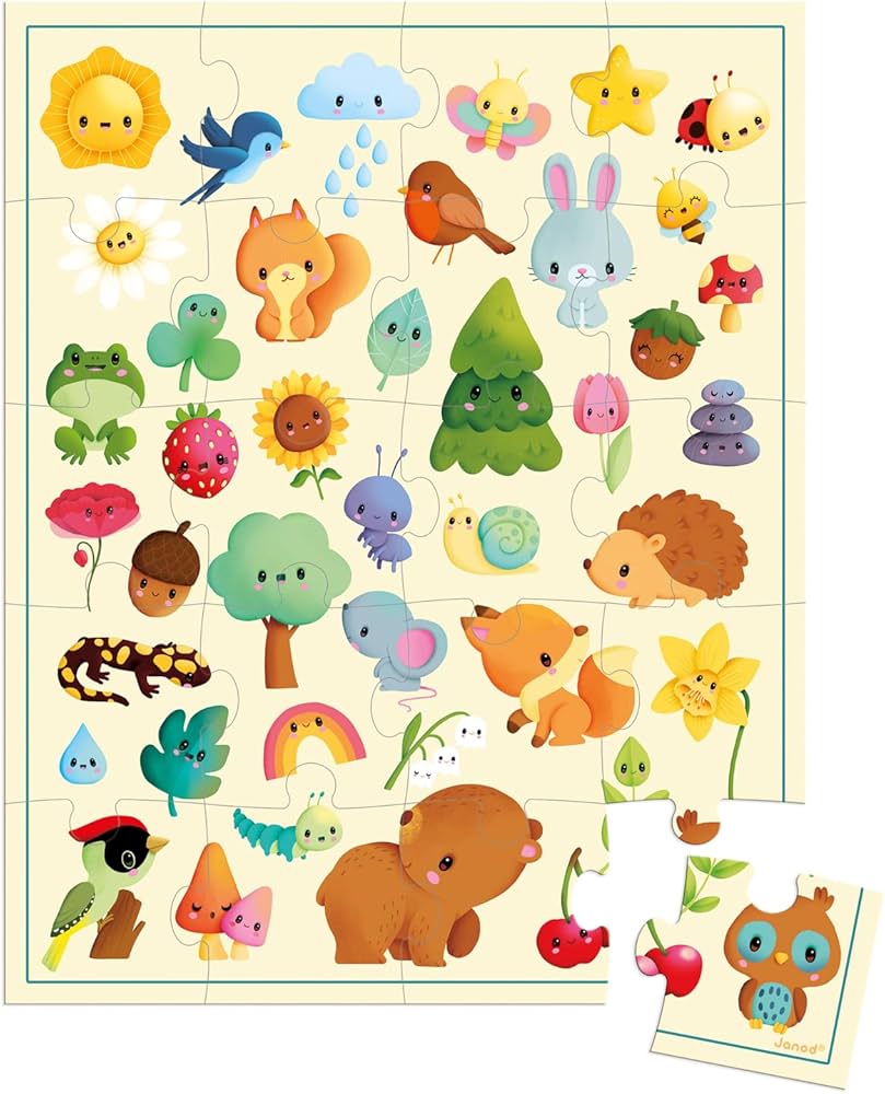 - Puzzle de cartón resistente con 20 piezas grandes.