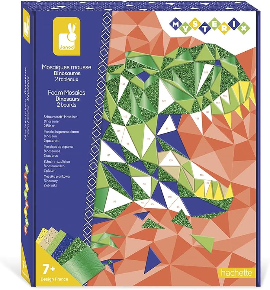 Sumérgete en un viaje a la prehistoria con el encantador set Janod Mosaicos de Espuma Dinosaurios. Este tesoro creativo invita a los pequeños artistas a explorar el fascinante mundo de los dinosaurios a través de una actividad manual vibrante y accesible. Es la propuesta perfecta para despertar la curiosidad por estas criaturas gigantes, mientras se sumergen en un universo de formas, colores y texturas. Imagina sus ojos brillando al ver cómo, pieza a pieza, sus escenas de dinosaurios cobran vida, transformando simples pegatinas en obras de arte personalizadas.