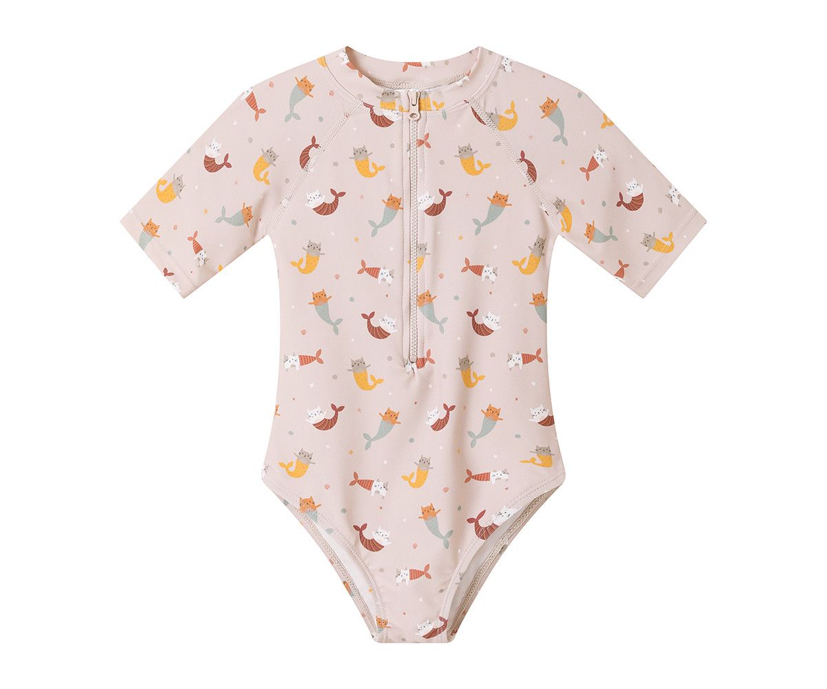 Este práctico y estilizado bañador cuenta con una cómoda cremallera frontal que facilita enormemente el momento de vestirse y desvestirse, fomentando la autonomía de los peques. Su tejido de alta calidad es suave al tacto, flexible para permitir total libertad de movimiento en el agua y resistente al cloro y al sol. Además, ofrece una importante protección solar UPF 50+ en las zonas cubiertas, cuidando la delicada piel de los niños mientras disfrutan del aire libre. El diseño de ‘Mermaid Cats’ es original y lleno de color, asegurando que sea el centro de todas las miradas.