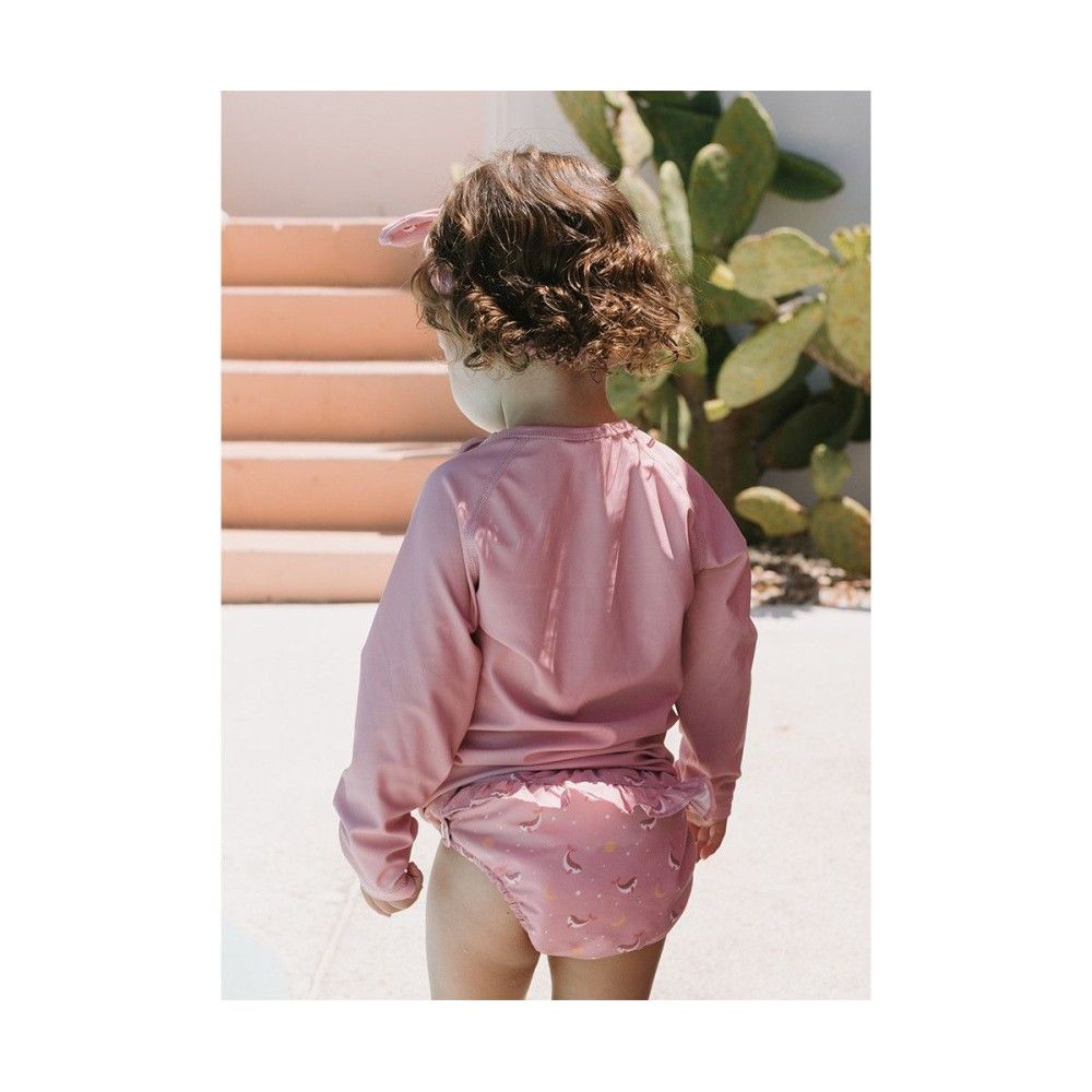Diseñado específicamente para las necesidades de los más pequeños, este bañador pañal es una alternativa inteligente y ecológica a los pañales de natación desechables. Su confección especial evita las fugas sólidas de manera efectiva, manteniendo el agua limpia y a salvo para todos. A diferencia de un pañal convencional, no absorbe líquidos ni se hincha en el agua, asegurando que tu bebé se sienta ligero y tenga total libertad para chapotear, gatear o dar sus primeros pasos en el borde de la piscina. Además, muchos bañadores Monneka, como este, incorporan un tejido con protección solar UPF 50+, cuidando la delicada piel de tu bebé bajo el sol.
