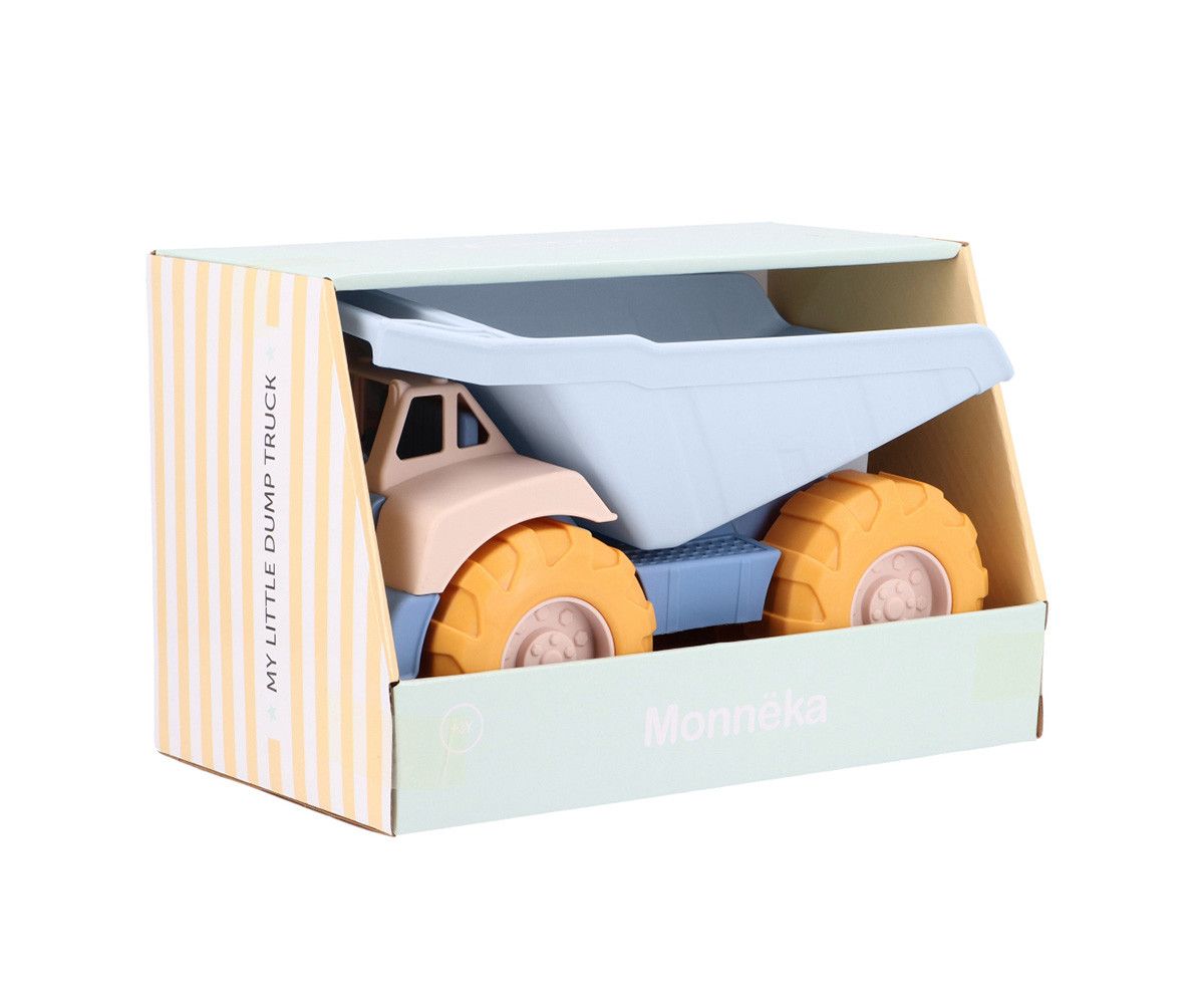 La mecánica del Monneka Camión Volquete Blue es sencilla e intuitiva, perfecta para fomentar la autonomía. Sus ruedas, que giran suavemente, permiten un fácil desplazamiento sobre diversas superficies, desde la alfombra de casa hasta la arena más fina. El volquete abatible es el protagonista: los niños pueden cargar objetos pequeños, como arena, hojas, o sus juguetes favoritos, y luego levantarlo para descargar la ‘mercancía’. Esta acción repetitiva no solo entretiene, sino que también refina la coordinación mano-ojo y la motricidad fina, habilidades cruciales en las primeras etapas de crecimiento.
